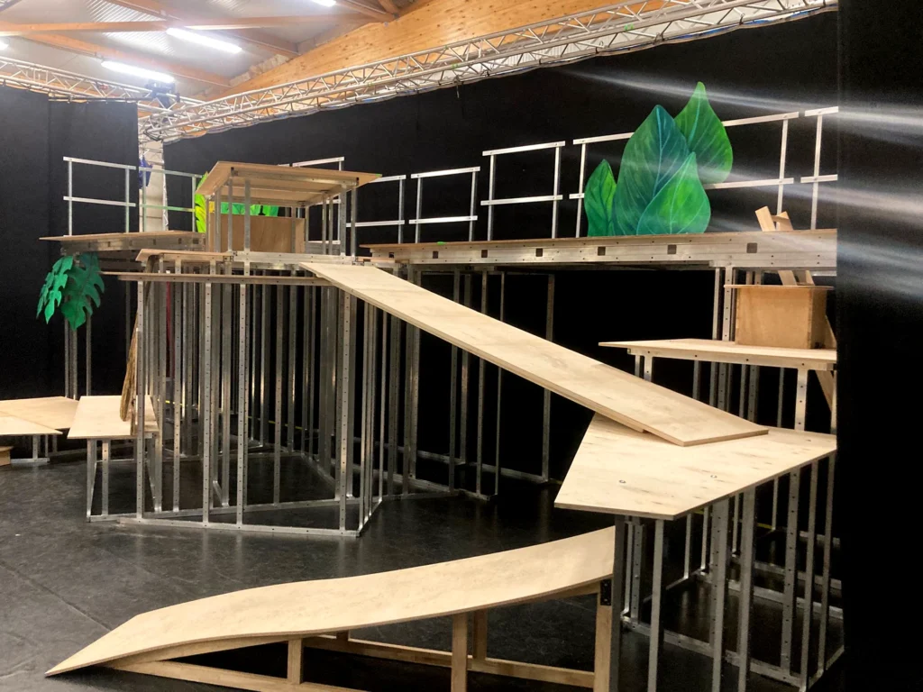 Ein perfekter Anlass war der Bau einer Interimstribüne. Deren Bauteile leisten inzwischen nicht nur im Zuschauerraum ganze Arbeit, sondern sind anschließend flexibel auf der Bühne für temporäre Bühnenbildkonstruktionen im Einsatz – ganz im Sinne eines cleveren Baukastensystems.